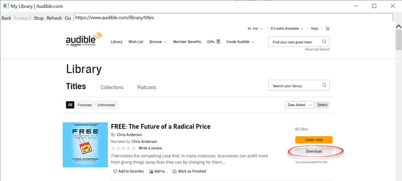 Step #1. Head to the Audible website and sign in to your account. Go to Library. Find the audiobooks you want to be converted. Click the Download button beside them. Store these downloads to a folder on your PC.