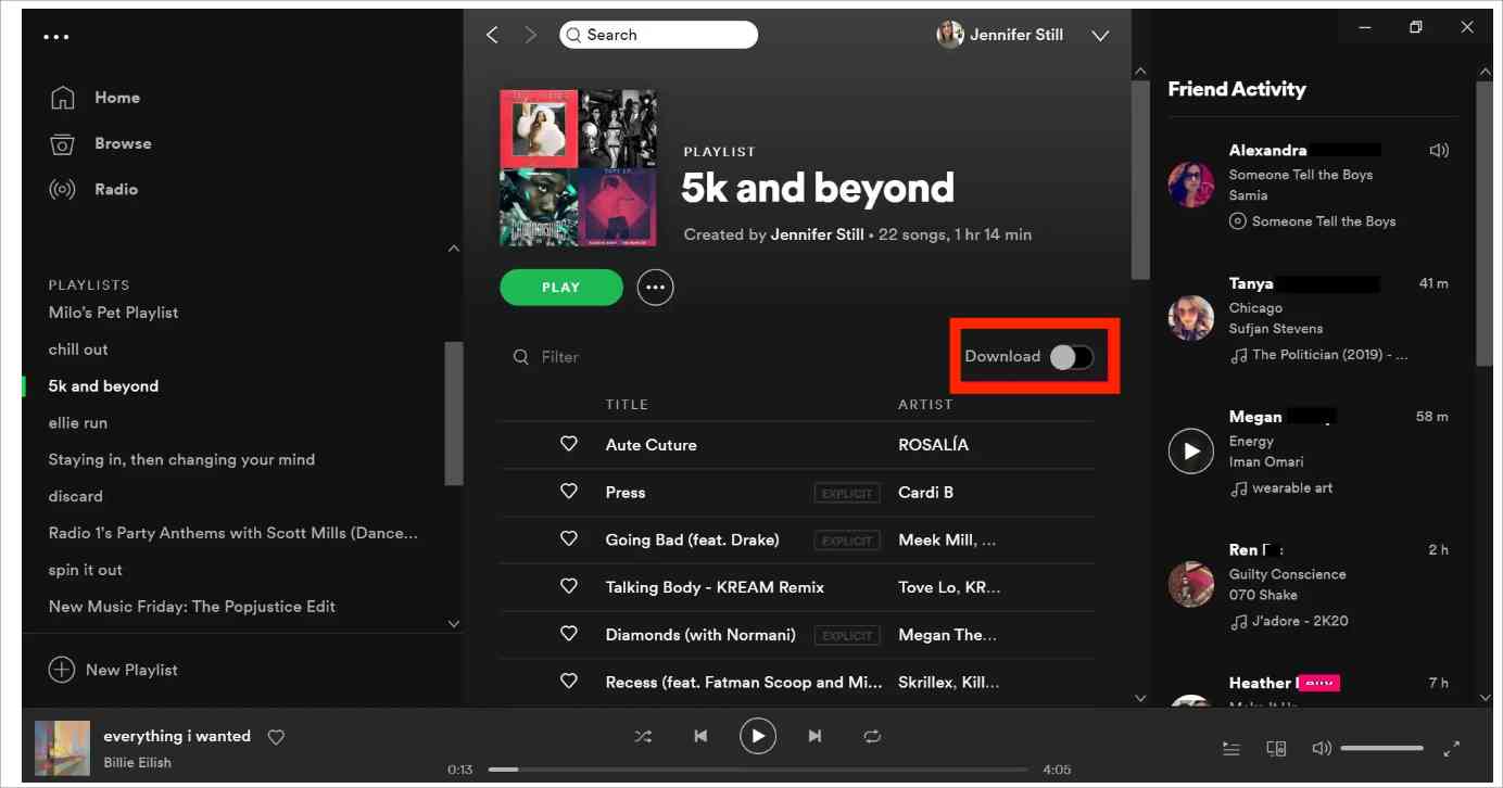 - You’ll see a "Download" button below the name of your playlist. Toggle this button to begin downloading your music.